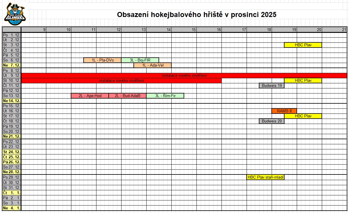 Rozpis využití hokejbalového hřiště v jednotlivých měsících