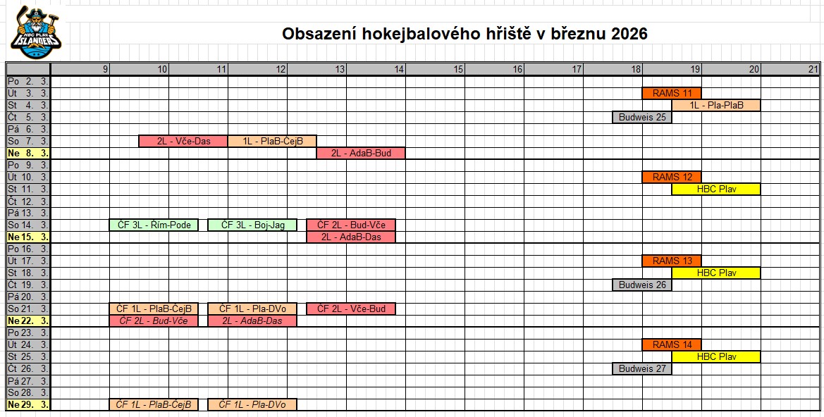 Rozpis využití hokejbalového hřiště v jednotlivých měsících